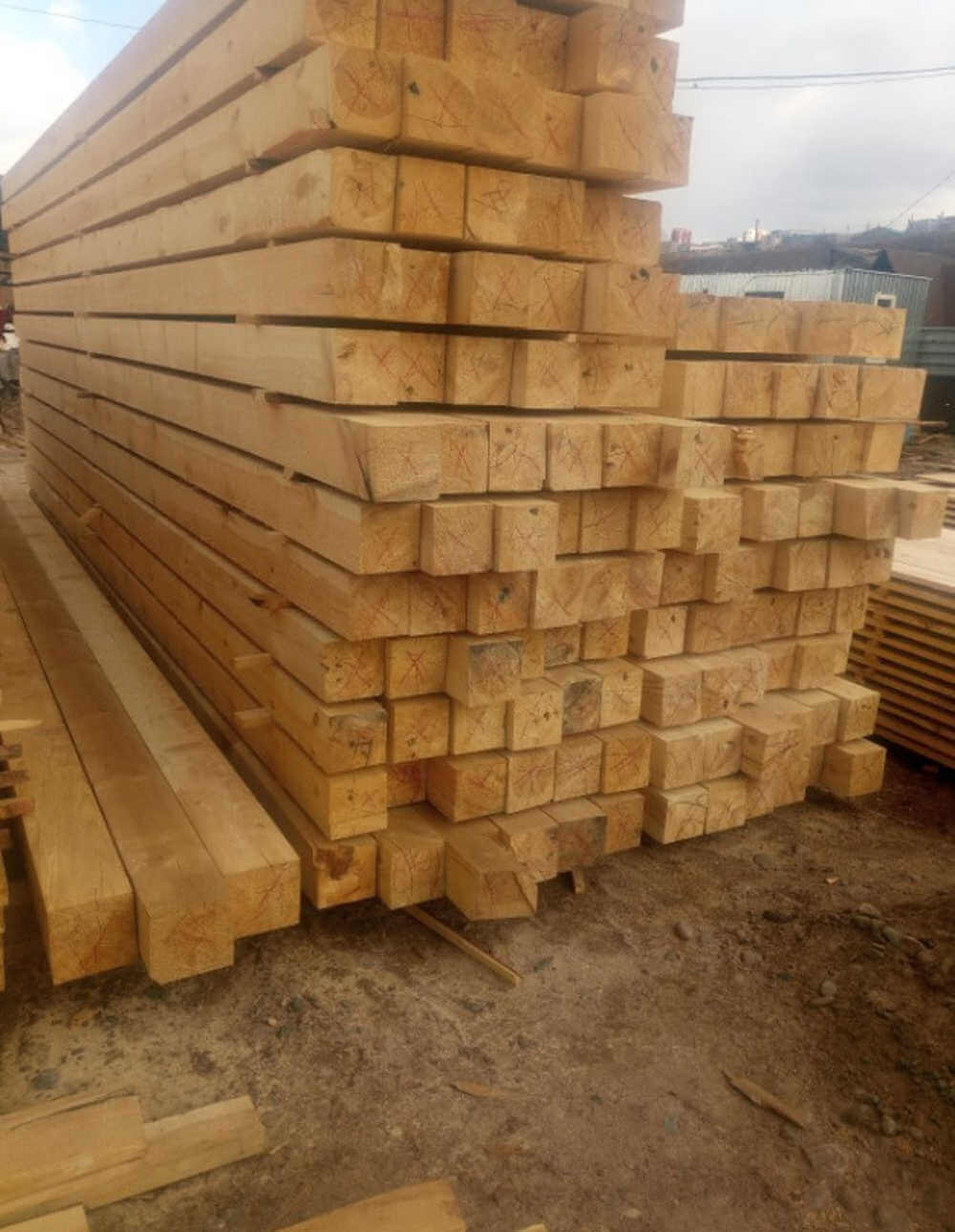 Брус ровной геометрической формы с естественным уровнем влажности. Сечение прямоугольное, толщиной 100 мм, шириной 150 мм. Длина бруса 6000 мм.