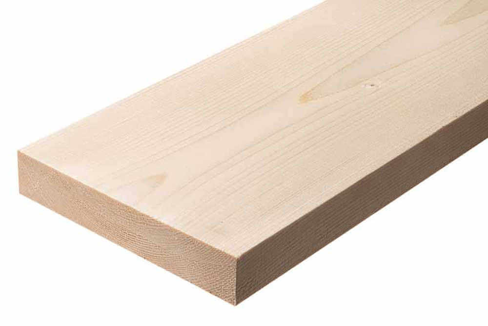 Толстая узкая строительная доска. Прекрасный бюджетный выбор для конструкционных работ, где не столь критичен идеальный внешний вид материала.